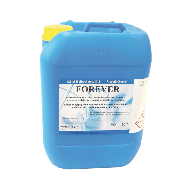 Forever es un suavizante líquido concentrado para usar en la lavadora y en lavanderías profesionales. Forever contiene una selección de esencias contenidas en microcápsulas que se activan al usar o frotar las telas, incluso después de semanas de lavado, liberando una nota perfumada fresca y agradable.